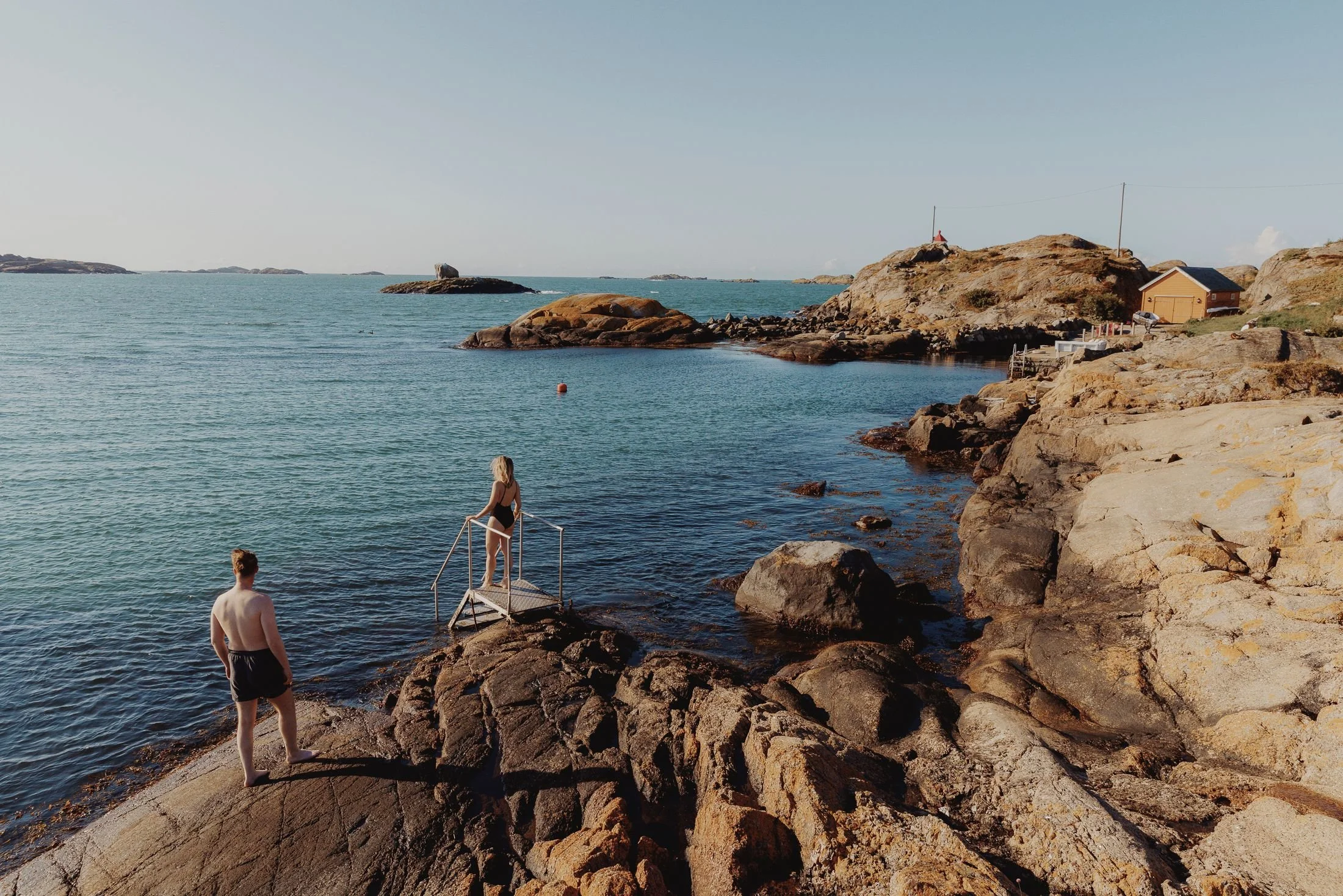 Morgenbadet er tradisjon i Nevlunghavn, da rusler alle rundt i badekåper uten blygsel. Fra badehotellet er det kort vei til sjøen og det salte, kjølige, forfriskende morgenbadet.